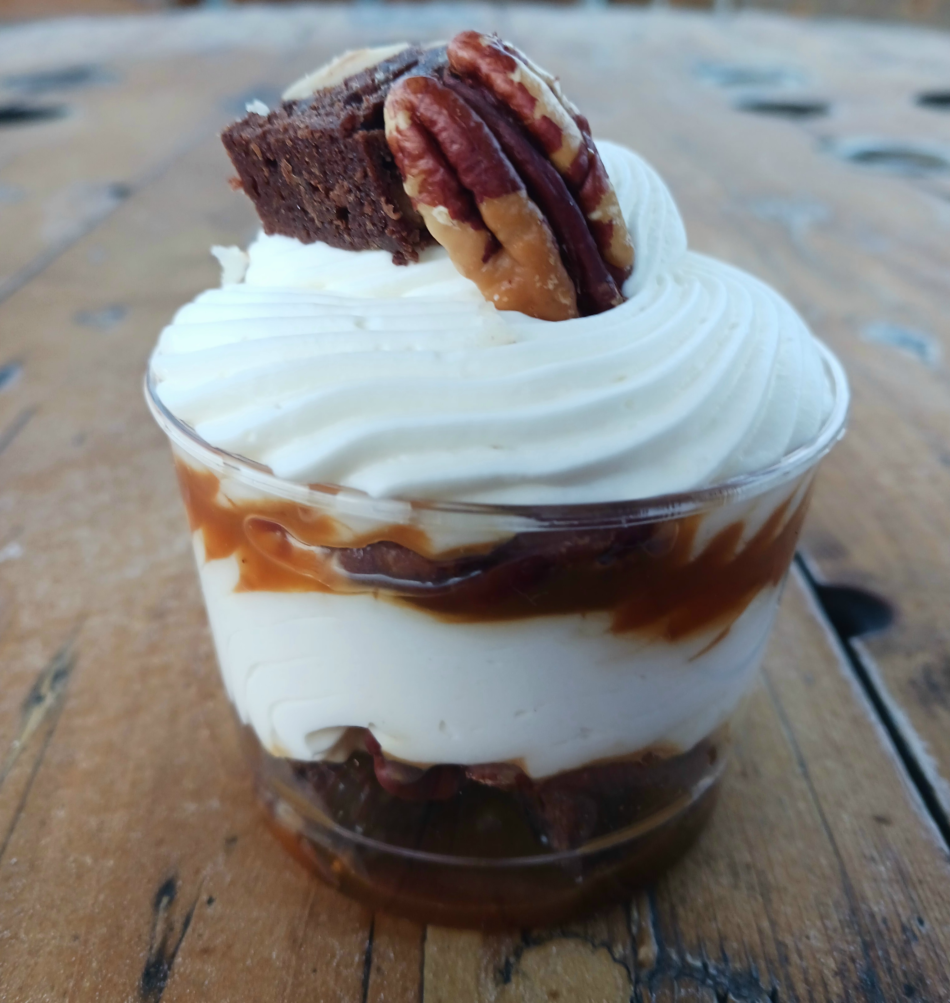 Crème Mascarpone Vanillée, Brownie Maison au Caramel / Noisette, et des Noix de Pécan